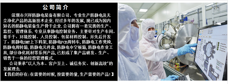 深圳市艾首靜電防護有限公司專業生産防靜電及無塵淨化産品的高新技術企業.經(jīng)過(guò)多年的發(fā)展,現已成(chéng)爲國(guó)内知名的防靜電裝備生産骨幹企業.公司擁有一套完善的生産 監控 管理體系.專業從事(shì)靜電控制業務,主要針對(duì)生産車間,着手于:環境控制、人員控制、包裝材料控制,并先後(hòu)開(kāi)發(fā)了防靜電SMT上下料架,防靜電PCB周轉車,防靜電工作凳椅,防靜電周轉箱,防靜電元件盒,防靜電中空闆箱,防靜電作業工具,部分淨化耗材等系列産品,已形成(chéng)了集産品研發(fā) 生産 銷售于一體的經(jīng)營管理模式.